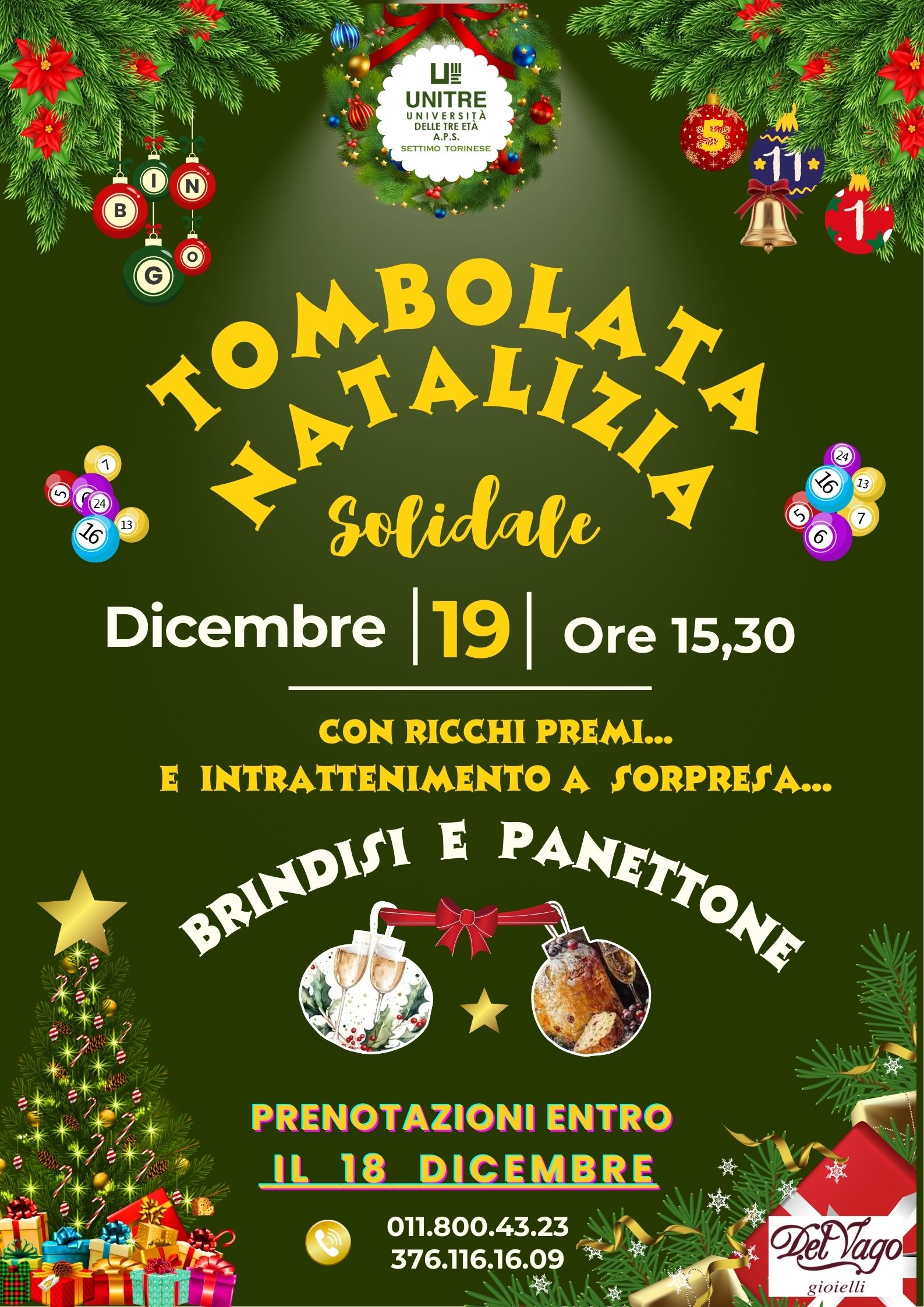 ALLE ORE 15.30 PRESSO IL SALONE UNITRE "TOMBOLATA NATALIZIA" IN OCCASIONE DEL SANTO NATALE, CI SCAMBIEREMO GLI AUGURI BRINDANDO E FESTEGGIANDO  CON UNA TOMBOLATA RICCA DI PREMI E CON I CANTI NATALIZI DEL NOSTRO CORO GOSPEL DIRET...