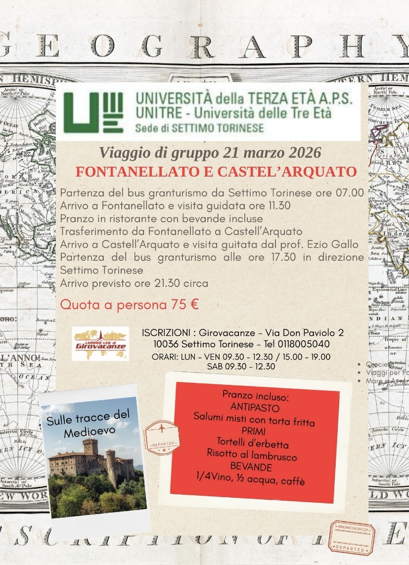 ACCOMPAGNATI DAL PROF. EZIO GALLO (DOCENTE DI STORIA) VISITEREMO, SULLE TRACCE DEL MEDIOEVO, LE BELLISSIME LOCALITA' DI CASTELL'ARQUATO E FONTANELLATO.